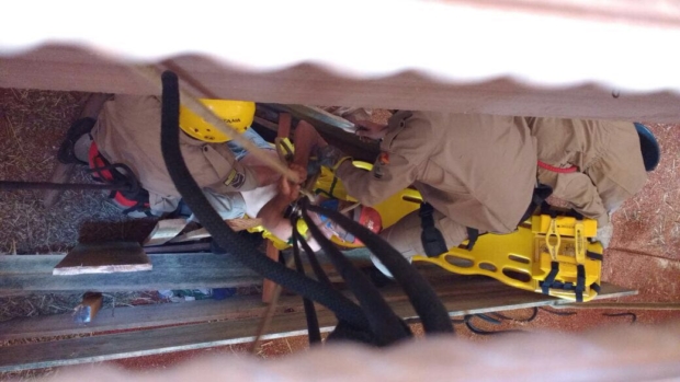 As equipes de Salvamento Terrestre e Resgate do 6º Batalhão Bombeiro Militar de Itumbiara, foram acionadas na tarde de hoje, 19, para o resgate de uma vítima parcialmente soterrada por grãos, em um silo, próximo à cidade de Centralina-MG, a 18 km de Itumbiara.