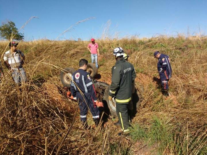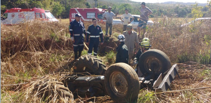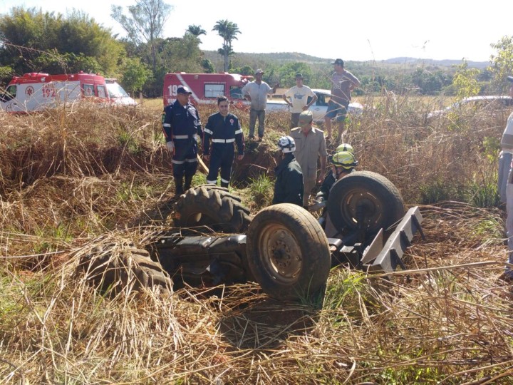 No local, os bombeiros militares foram informados que o homem estava roçando a pastagem de sua fazenda, proxímo ao Posto Itamaraty na BR-153, quando o trator ao qual ele conduzia caiu em uma vala prensando o condutor.