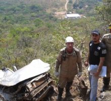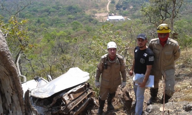 As guarnições de resgate e salvamento chegaram ao local após uma progressão no terreno, cerca de 200 metros de altura onde o veículo havia caído.