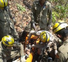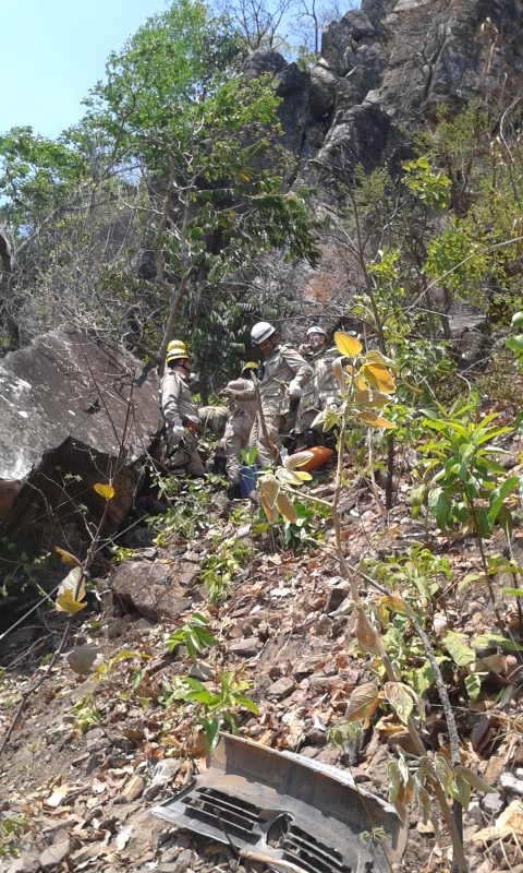Bombeiros Militares de Jaraguá atuam em grave acidente de queda de veículo em despenhadeiro