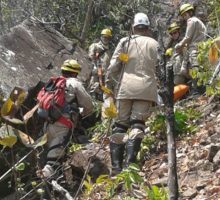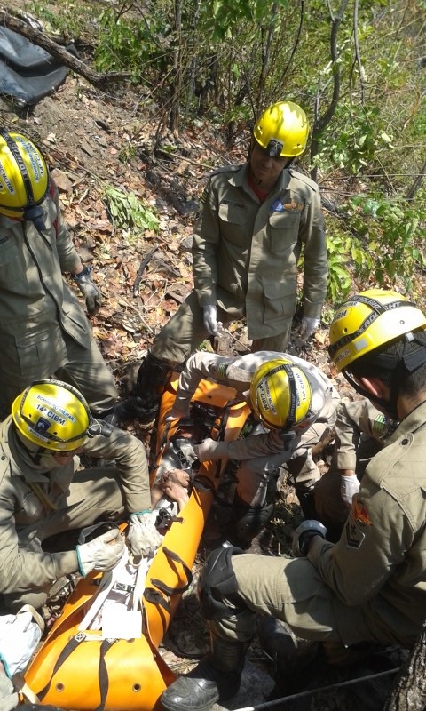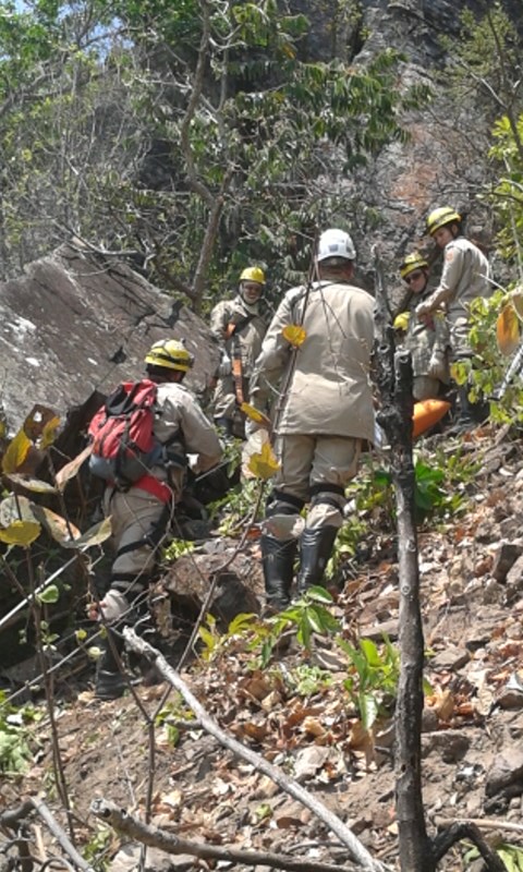 No local, as Equipes encontraram uma vítima, sem sinais vitais. Foram utilizados equipamentos e técnicas apropriadas para resgate de vítimas em altura e em terrenos de difícil acesso. Confira fotos:
