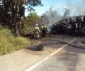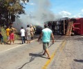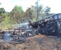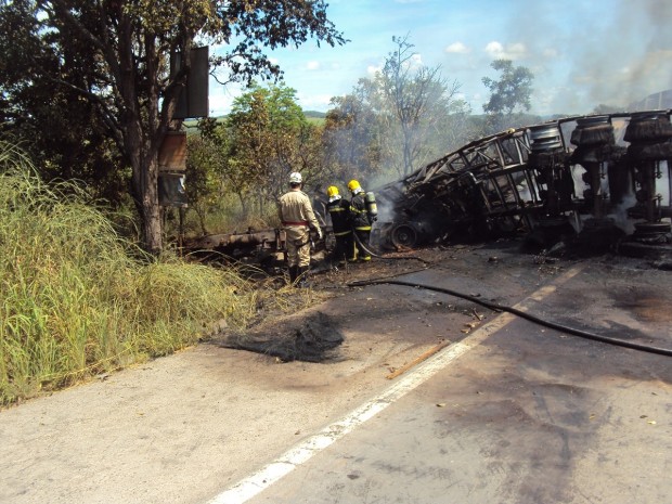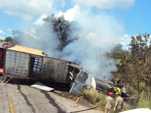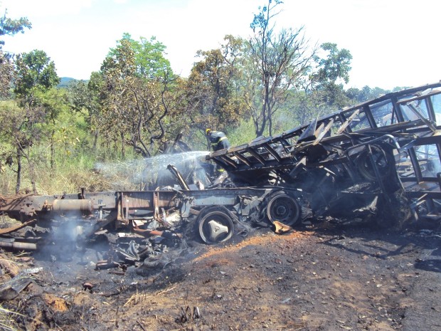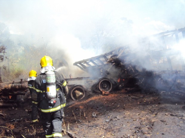 No local, as guarnições de resgate, salvamento e combate a incêndio depararam com  acidente automobilístico na BR 153, que estava incendiando, foi efetuado o combate ao incêndio,   o desencarceramento das vítimas e retirada dos corpos carbonizados, sendo  vítimas os 2  condutores e 1 passageiro do caminhão.