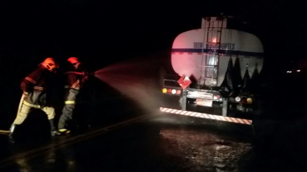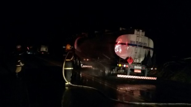 Bombeiros Militares de Jaraguá combatem incêndio em caminhão carregado de combustível