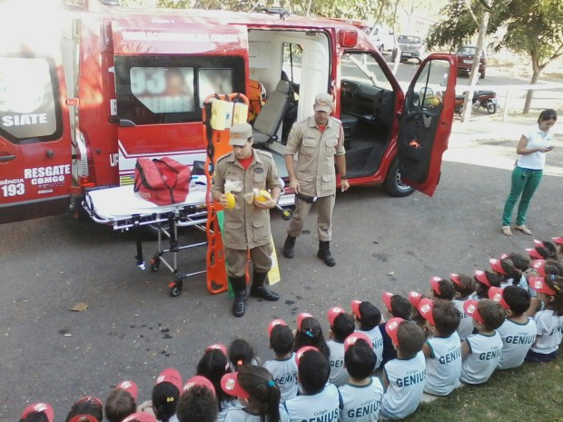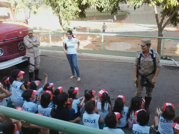 Bombeiros Militares da 14ª Companhia Independente de Bombeiro Militar (14ª CIBM) de Jaraguá, alinhados com o Planejamento Estratégico do Corpo de Bombeiros Militar do Estado de Goiás e a Execução Estratégica desta Companhia, estão realizando palestras de prevenção de acidentes e incêndios e ainda demonstração de viaturas e equipamentos nas escolas do município. Na manhã de quarta-feira, dia 20, foi realizada uma visita ao Colégio Genius em Jaraguá com palestras e demonstração de viaturas e equipamentos.