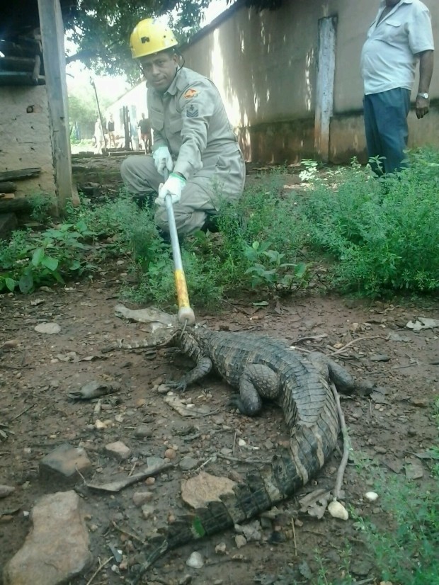 Bombeiros Militares de Jaraguá resgatam jacaré em residência