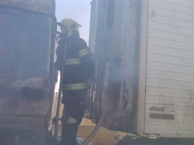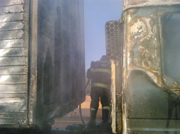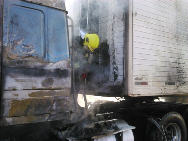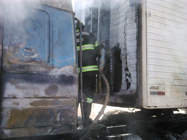 Bombeiros Militares de Jataí atuam em ocorrência de incêndio em veículo de carga na BR-364
