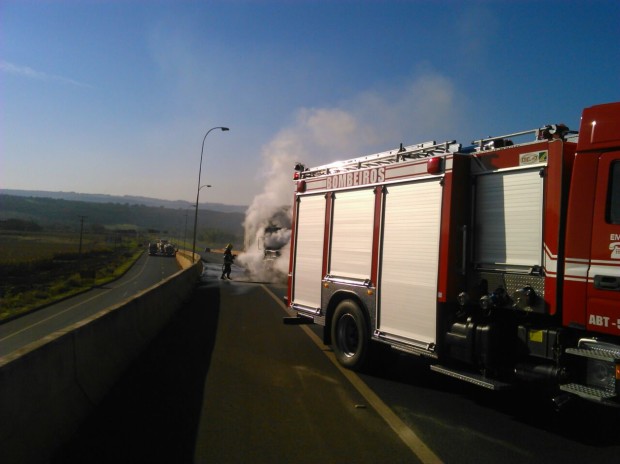 Na manhã do último domingo,19, a 3ª Companhia Independente Bombeiro Militar, em Jataí, foi acionada para atender uma ocorrência onde um veículo de carga pegou fogo em um viaduto na BR-364, trevo com a GO-184, no município de Jataí.