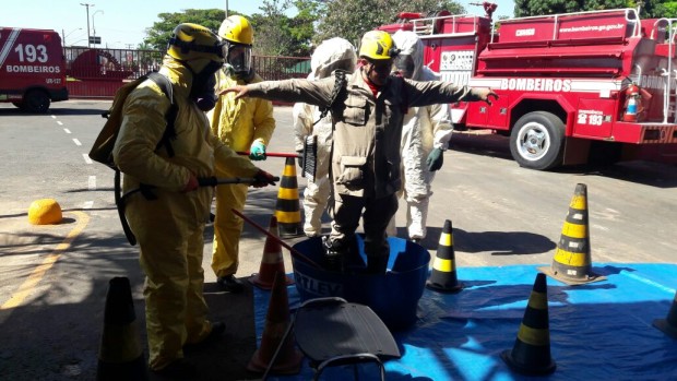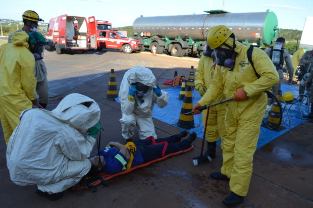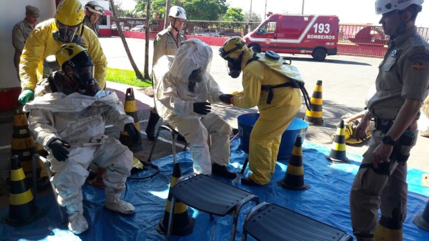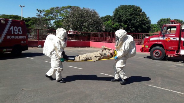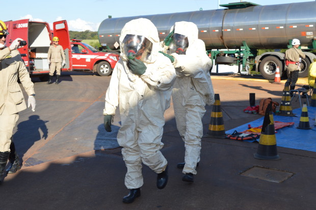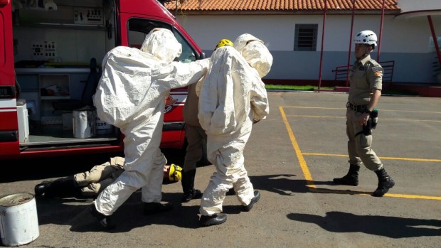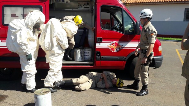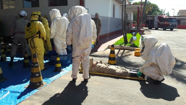 Na semana passada, Bombeiros Militares de Jataí participaram de instrução e simulado de ocorrência envolvendo produtos perigosos. Com a presença do Capitão Valério, especialista na área, os militares participaram de atividades práticas e teóricas no sentido de familiarizar e atualizar os conhecimentos sobre o atendimento de ocorrências envolvendo Produtos Perigosos. Temas como a identificação dos materiais perigosos, equipamentos operacionais de proteção individual e coletiva e atuação nas ocorrências foram abordados durante a atividade. Confira fotos:
