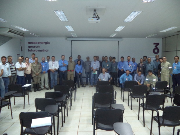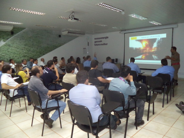 A 3ª Companhia Independente Bombeiro Militar, de Jataí, ministrou palestra sobre segurança em tanques de combustível na terça-feira, 8, para funcionários de empresas da região que possuem processos de produção de etanol e armazenagem do produto. A palestra, ministrada pelo Tenente Coronel Hélio Cristiano do Carmo, Comandante da 3ª CIBM, teve como finalidade melhorar a prevenção nas indústrias e reforçar a importância de manter o Plano de Ação Mútuo com objetivo integrar os órgãos envolvidos em caso de sinistro. O grande incêndio em tanques de combustível de uma empresa no bairro Alemoa, em Santos, em abril, foi mostrado como exemplo da importância do tema. Participaram da palestra o 1º Tenenente Sebastião Alves da Silva, chefe da SECIP da 3ª CIBM, e mais 36 pessoas entre administradores, engenheiros de segurança e técnicos de segurança do trabalho das empresas. Confira fotos: