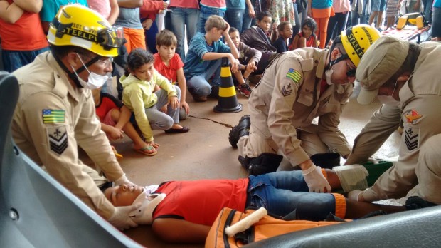 Bombeiros Militares de Jataí realizam palestra e simulado educativo em escola