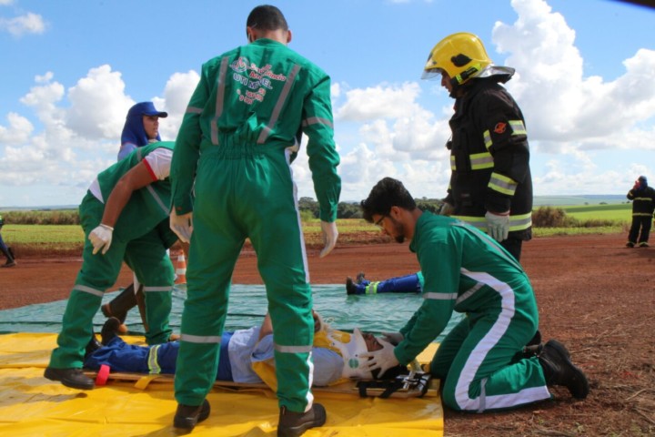 Na tarde de quinta-feira, 22, o 13º Batalhão Bombeiro Militar, em Jataí, realizou simulado operacional em uma indústria de etanol de Perolândia, a 80 km de Jataí. O simulado, com um cenário de acidente de trânsito entre um carro de passeio (duas vitimas) e um ônibus da empresa de etanol (sete vítimas), utilizou o Sistema de Comando de Incidente (SCI), ferramenta fundamental no controle de recursos na atuação das equipes na ocorrência. No evento foi acionado o Plano de Auxílio Mútuo (PAM), que contou com a participação de várias empresas privadas e órgãos públicos da região, como a brigada de incêndio e equipe médica da indústria de etanol, brigadistas de uma produtora energética de Jataí, equipe de enfermagem da Secretaria de Saúde de Perolândia, ambulância de uma empresa produtora de óleo de soja de Jataí, ambulância de um hospital de Mineiros – GO, e com as equipes de resgate (UR 143) e salvamento (ASA 59) da Organização Bombeiro Militar de Jataí. Após o término do simulado foi realizado um briefing com todos os participantes do incidente, visando discutir as ações realizadas com objetivo de aprimorar o atendimento de vítimas em acidentes.