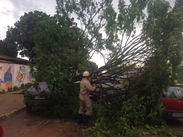 Bombeiros Militares de Luziânia atendem ocorrências de quedas de árvores após forte chuva