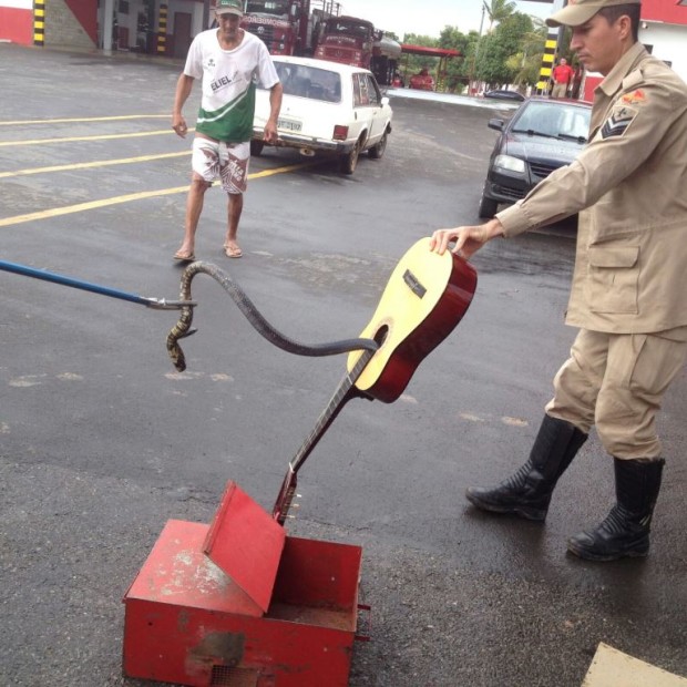 Na sexta-feira, 27, o 5º Batalhão Bombeiro Militar , em Luziânia, realizou atendimento de uma ocorrência inusitada. Um senhor chegou ao quartel com um violão informando que havia dentro uma serpente. A equipe de bombeiros militares iniciou o atendimento afrouxando as cordas do violão para verificar se a serpente estava dentro. Encontraram uma serpente da raça caninana com mais de 1 metro alojada no interior do instrumento musical. A serpente não apresentava ferimentos e foi retirada do violão.