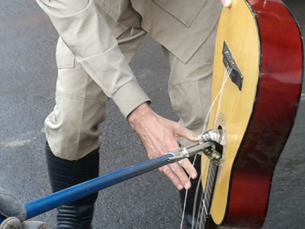 Bombeiros Militares de Luziânia resgatam serpente que se escondeu dentro de um violão