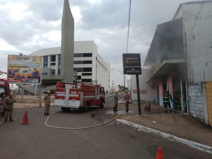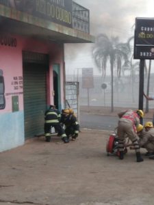 Bombeiros Militares de Luziânia debelam incêndio em loja de capotaria