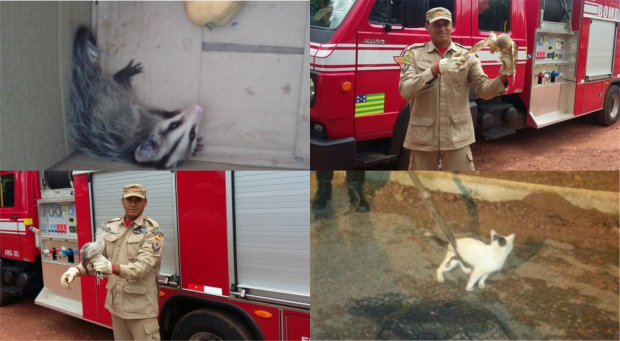 Os bombeiros militares capturaram um filhote de socozinho (ave pescadora), uma coruja branca com a asa fraturada e um filhote de gamba. Todos foram entregues aos cuidados da Zoonose de Valparaíso-GO. Outra ocorrência, não menos importante, foi a captura de um gato sem ferimentos que se encontrava no topo de uma árvore e, há tempos, não conseguia descer. Confira fotos: