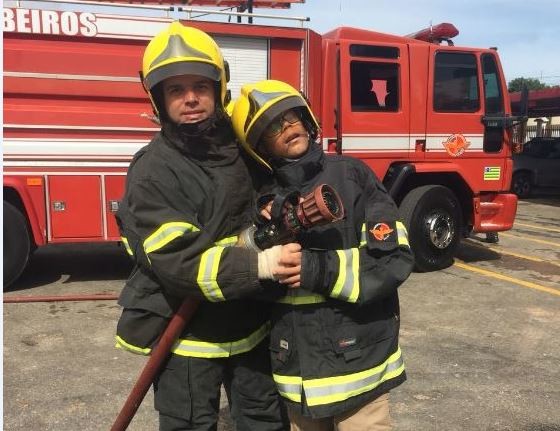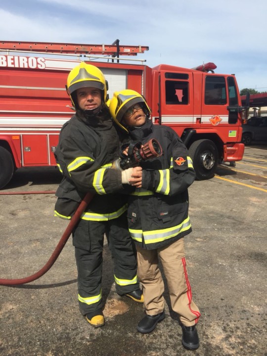 O garoto ficou muito entusiasmado com as atividades e a equipe de  bombeiros felizes ao demonstrar um pouco de suas atividades para o garoto. Confira fotos: