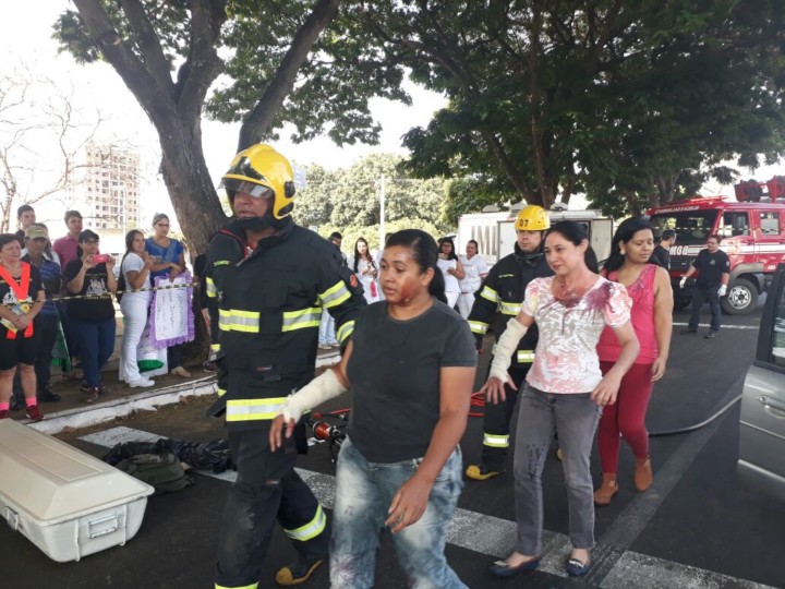 A Companhia Independente Bombeiro Militar, em Mineiros, realizou nesta segunda-feira, 25, no centro da cidade, um simulado operacional alusivo à Semana Nacional de Trânsito. Participaram do evento a Polícia Miliar, Polícia Técnico Cientifica, SMT e alunos do curso de enfermagem. Na ocasião, foi realizada a simulação de acidente de trânsito, envolvendo um veículo de passeio e motociclista, com a realização de procedimentos pré-hospitalar e demonstração de técnicas aos presentes.