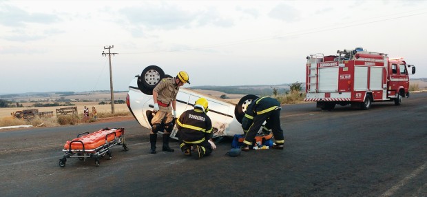 Bombeiros Militares de Morrinhos atuam em ocorrência de capotamento na GO 476