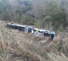 No final da tarde de sábado, dia 30, a 2a Companhia Operacional do 9o Batalhão Bombeiro Militar, em Morrinhos, foi acionada para atender uma ocorrência de saída de pista com tombamento na Br – 153, km 605, próximo ao posto da PRF, envolvendo um ônibus articulado .