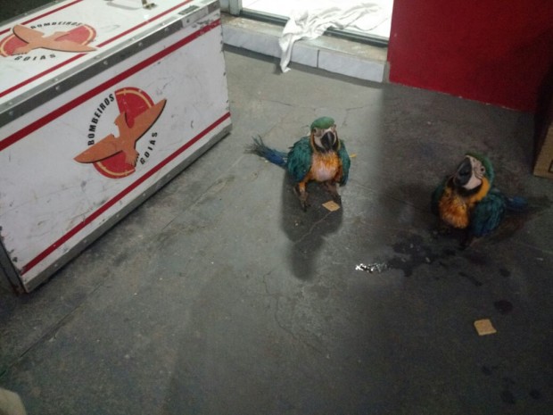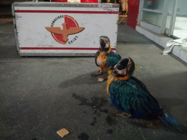 Bombeiros Militares de Morrinhos capturam dois filhotes de araras canindé