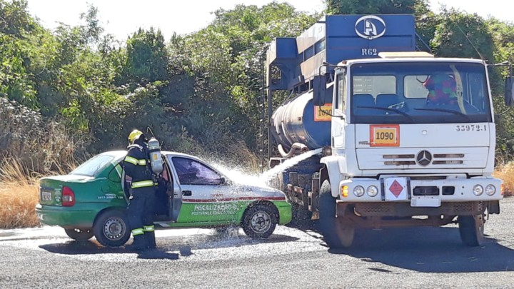 O evento, simulou uma colisão entre um veículo de passeio e caminhão de  produtos perigosos , com duas vítimas.