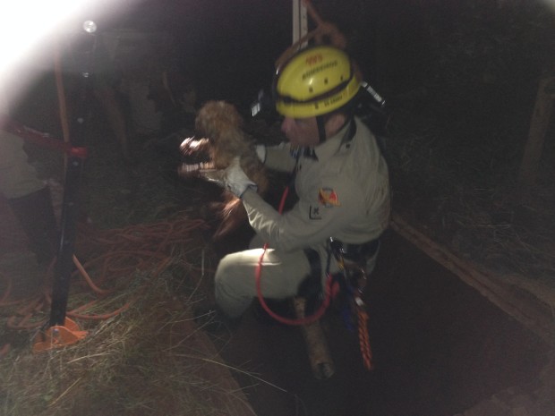 Na última quinta-feira, 30, a 2ª Companhia Operacional do 9º Batalhão Bombeiro Militar, em Morrinhos, foi acionado para uma ocorrência de salvamento de um cachorro em uma fossa de aproximadamente 7 metros de profundidade .
