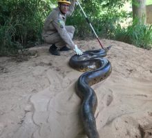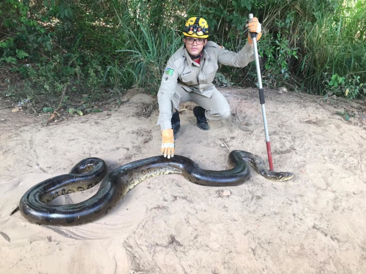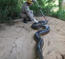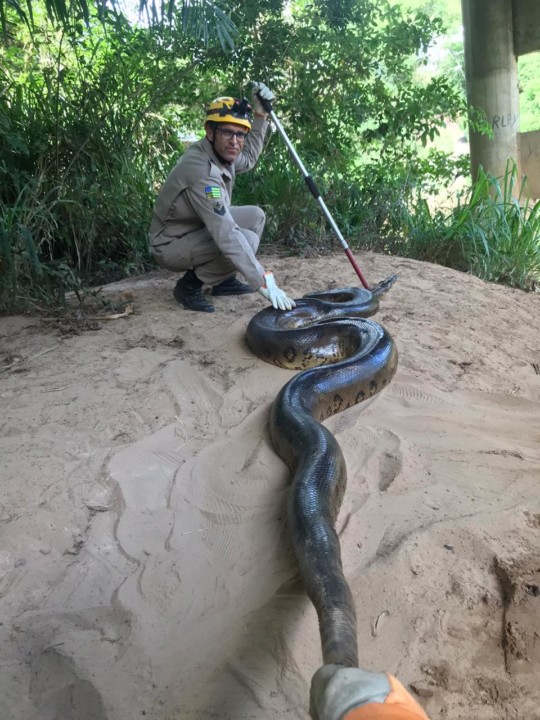 Bombeiros Militares da 12ª CIBM de Morrinhos foram acionados pelo telefone de emergência 193 pela 3ª CIPM de Piracanjuba para resgatar uma sucuri na tarde de domingo, 24. A guarnição de salvamento deslocou na viatura ASA-84, composta pelo Sargento Moura e Soldado Wander, até o local onde estava o réptil de aproximadamente 6 metros de comprimento. A cobra havia sido deixada com os policiais militares por um fazendeiro da região. Usando técnicas de captura e contenção de animais silvestres, os bombeiros resgataram a sucuri que não apresentava sinais de ferimentos. A sucuri foi libertada em uma reserva da região.