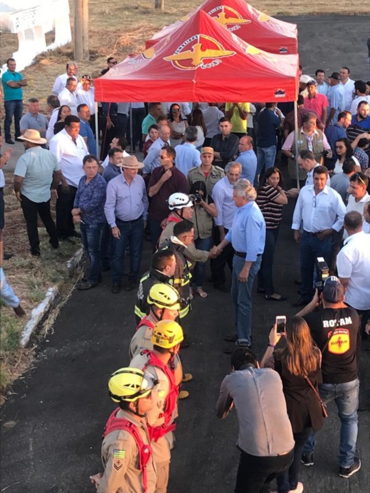 Na tarde de quarta-feira, 14, a 6º CIBM participou da recepção no aeroporto de Niquelândia do governador Ronaldo Caiado que foi à região prestigiar a 271ª Romaria a Nossa Senhora d’Abadia de Muquém. A equipe do @cbmgo fez atividade preventiva durante todo o evento. A festa religiosa de Muquém é uma das mais tradicionais de Goiás, realizada desde 1748. Além de distribuir material educativo entre os romeiros acampados, o Corpo de Bombeiros mantém equipes de plantão para prestar atendimentos durante a festa religiosa, com uma estrutura montada no povoado de Nossa Senhora D’Ábadia do Muquém e também no Posto de Apoio da OVG na GO 237, no trevo de acesso ao Município de Colinas do Sul.