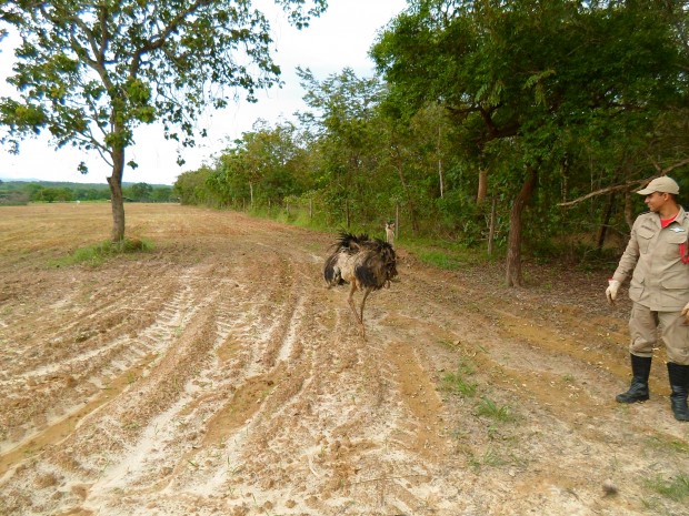 A equipe da 16ª CIBM fez o resgate do animal que não apresentava ferimentos. Ela foi capturada para ser solta em seguida em uma região de Cerrado, seu habitat natural.  Considerada a maior ave brasileira, a ema (Rhea americana (L.), também chamada nandu, nhandu, guaripé e xuri, é uma ave da família Rheidae cujo habitat se restringe à América do Sul. Apesar de possuir grandes asas, não voa. Usa as asas para se equilibrar e mudar de direção na corrida.