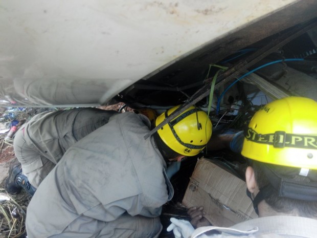 As Equipes de Bombeiros Militares estabilizaram a vítima e realizaram a retirada das ferragens  para a remoção do motorista utilizando o desencarcerador.