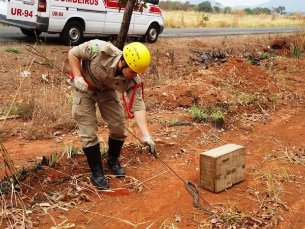 Bombeiros da 11ª Companhia Independente Bombeiro Militar, em Pirenópolis, realizaram na manhã de quinta-feira, dia 20, o resgate de uma cobra cascavel. A cobra, uma espécime peçonhenta e perigosa, estava na caixa de bomba da piscina da residência, quando foi avistada por moradores que acionaram o Corpo de Bombeiros pelo telefone de emergência 193. Depois de ser capturada sem nenhum ferimento, a cascavel foi solta em uma área de preservação ambiental.