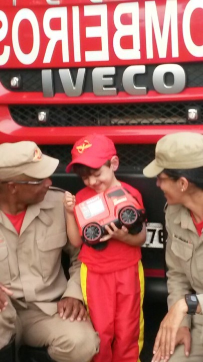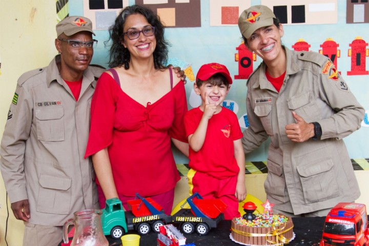 A Companhia Independente Bombeiro Militar de Planaltina recebeu um convite para participar de uma festa de aniversário de 4 anos do garoto Otavio Henrique no domingo, dia 14. Segundo a mãe da criança, a senhora Mônica, o filho possui grande admiração e carinho pelo Corpo de Bombeiros Militar do Estado de Goiás (CBMGO). A CIBM de Planaltina então preparou uma surpresa para a criança enviando os militares para participar da festinha. O Cabo Gilvan e a Soldado Débora abraçaram a causa e ainda prepararam uma pequena lembrancinha para a criança, que ficou muito feliz com a presença do bombeiros militares em seu aniversário. Confira fotos: