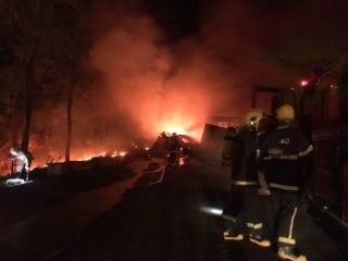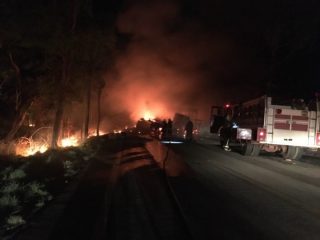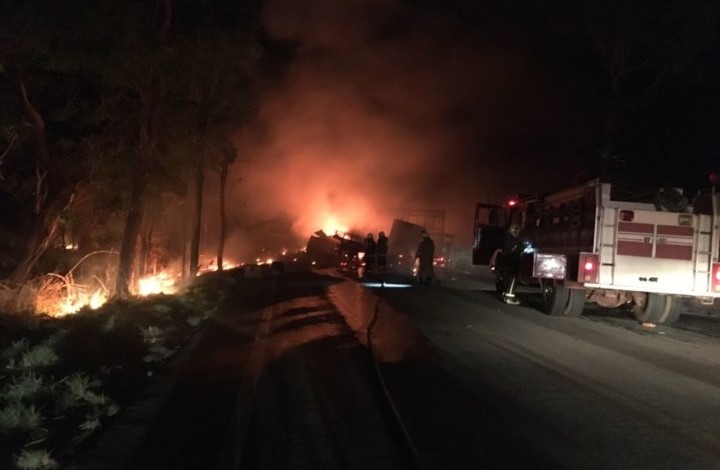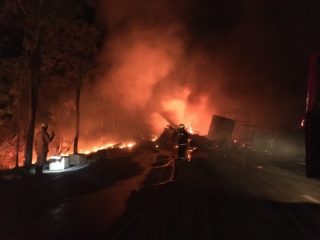 Bombeiros Militares de Porangatu foram acionados para socorrer vítimas de um grave acidente na BR-153 que deixou quatro mortos em Mara Rosa, na noite de sábado, 7. A colisão envolveu cinco caminhões, três carretas e um carro de passeio. Houve um grande incêndio após a batida e quatro pessoas morreram carbonizadas. Oito conseguiram sobreviver e foram socorridas e levadas para hospitais da região. Após o acidente, a pista ficou totalmente interditada nos dois sentidos e os motoristas foram orientados a fazer desvios. Os Bombeiros Militares trabalharam para fazer a limpeza da pista que ficou escorregadia por conta do óleo e de outras substâncias e resíduos que foram lançados no asfalto.