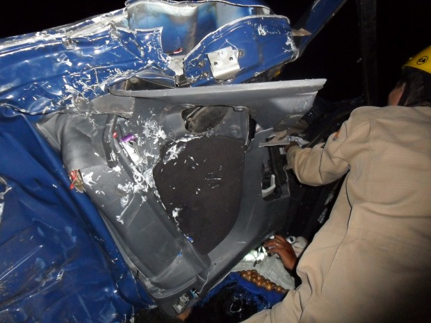 No local, as Equipes de Bombeiros Militares trabalharam incessantemente, por aproximadamente 2 horas, realizando a retirada das ferragens de uma vítima . Foi necessária a utilização do desencarcerador com a tesoura mecânica, expansor, corta pedal, além do corta frio e das correntes de tração. Durante toda a ocorrência a vítima fora monitorada e imobilizada e após o desencarceramento foi levada com vida ao Hospital Municipal de Porangatu.