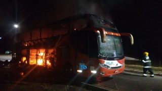 Bombeiros Militares de Porangatu combateram na madrugada de hoje incêndio em um ônibus de turismo, na BR-153, Km 72, trevo Norte de Porangatu. O incêndio começou na parte traseira do veículo e se alastrou rapidamente. O motorista, ao perceber o incêndio, parou o veículo e imediatamente e acionou o Corpo de Bombeiros pelo telefone de emergência 193.