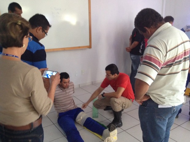 Nesta quinta-feira, dia 7, Bombeiros Militares do 11° Batalhão Bombeiro Militar (Porangatu), ministraram palestra e treinamento sobre Primeiros Socorros e Combate a Incêndio à servidores da SANEAGO de 18 municípios da Região Norte. O objetivo é a cooperação entre instituições públicas para agilizar e reforçar o atendimento a possíveis acidentes, focando na prevenção e garantindo, portanto maior segurança à população. Além da parte teórica sobre os temas, os militares promoveram parte prática para treinamento dos servidores. Confira fotos:
