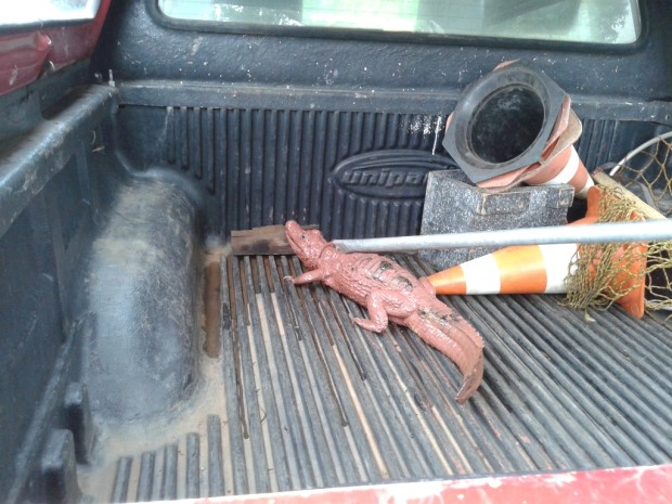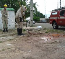 Bombeiros Militares de Porangatu resgatam filhote de jacaré no centro do município