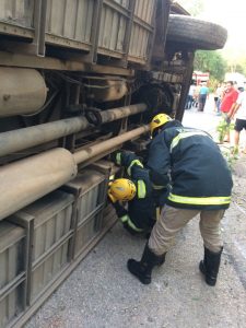 O 11º Batalhão Bombeiro Militar, de Porangatu, foi acionado no início da noite de quinta-feira, 1º, para socorrer vítimas de uma acidente de trânsito envolvendo ônibus escolar. O veículo que fazia o transporte de cerca de 35 alunos de Formoso para Porangatu colidiu com um caminhão no KM 105 da BR-153, próximo a Santa Teresa de Goiás. Uma das vítimas estava com suspeita de fratura no nariz e o motorista do ônibus sofreu um ferimento corte contuso na perna. Ambos foram transportados para o hospital municipal de Porangatu. Trabalharam na ocorrência o Sargento Thompson, os Cabos Williams e Otnihel e o Soldados Alves, Roberto Cruz e Sarah.