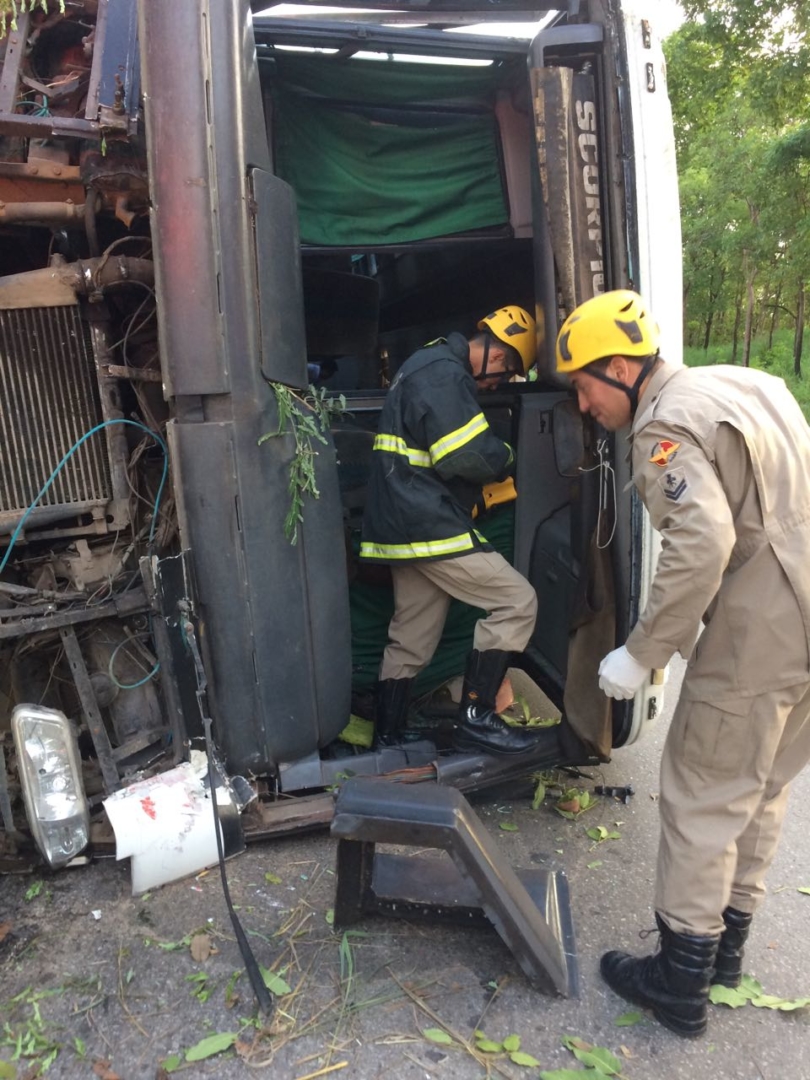 Bombeiros Militares de Porangatu socorrem vítimas de acidente envolvendo ônibus escolar