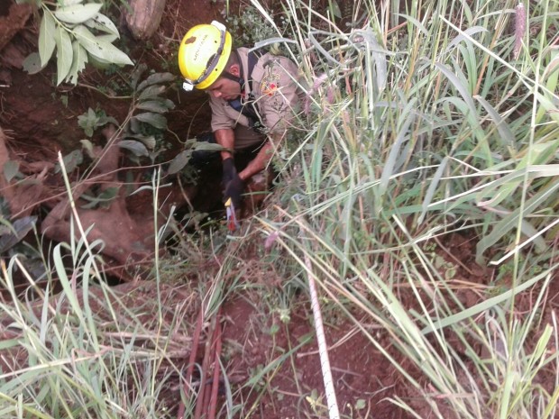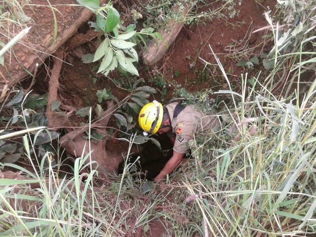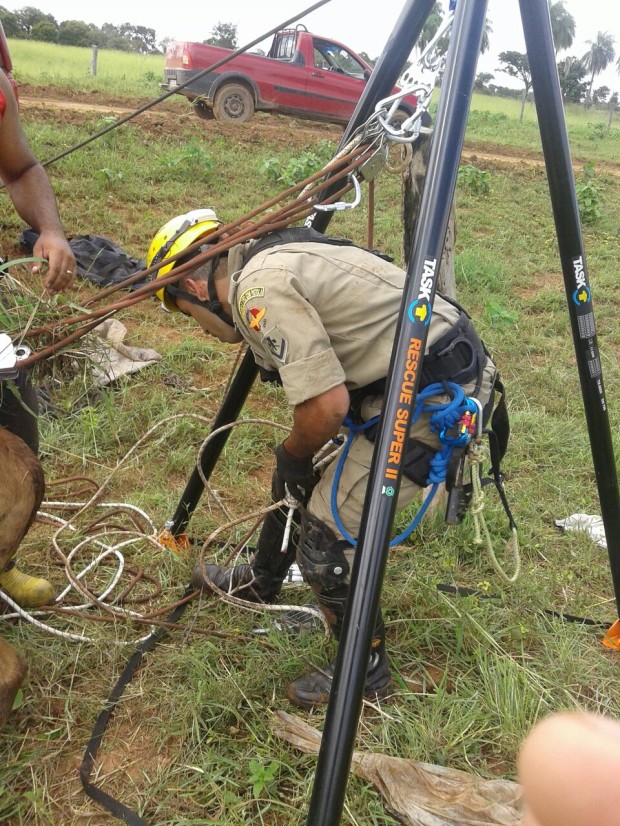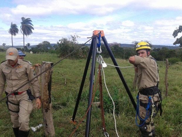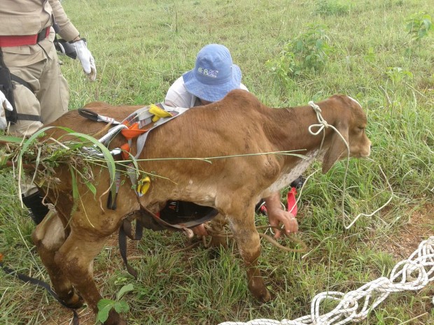 Bombeiros Militares de Posse resgatam bezerro que havia caído em poço de 9 metros