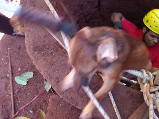Na manhã do último sábado, 26, a Equipe de Bombeiros Militares do Corpo de Bombeiros Militar de Quirinópolis foi acionada para socorrer um cachorro que havia caído em uma cisterna de 15 metros de profundidade.