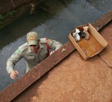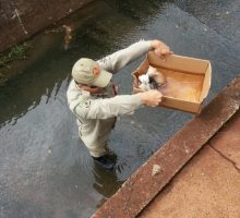Bombeiros Militares de Quirinópolis resgatam filhotes de gato dentro de córrego da cidade