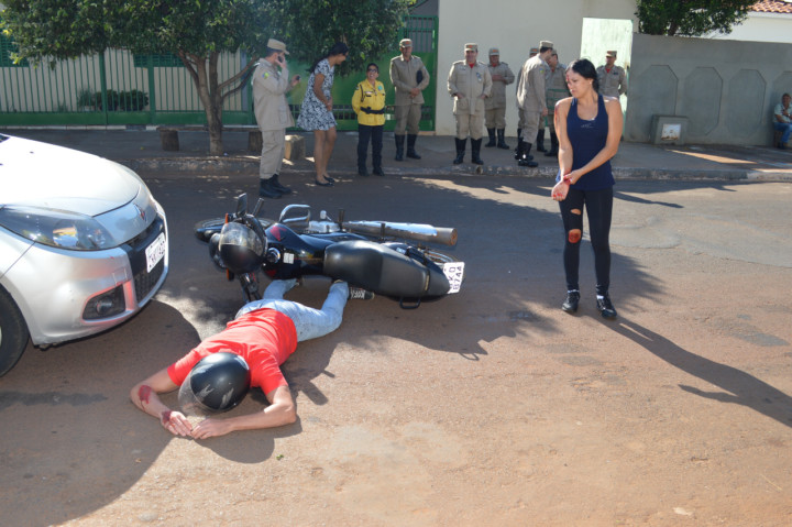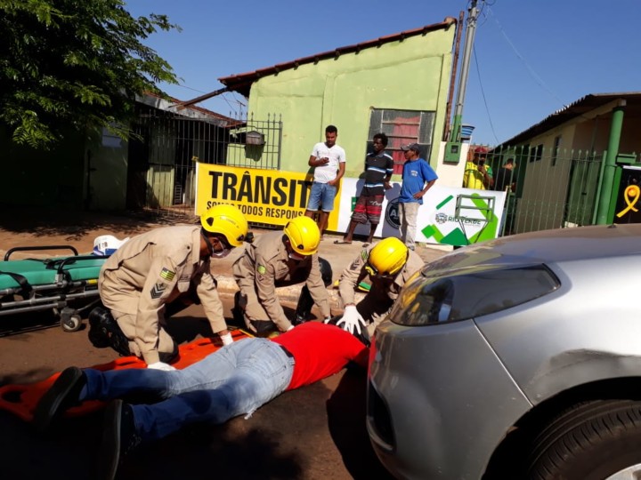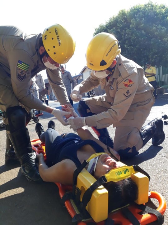 Na manhã de sexta feira, 25, foi realizado pelos bombeiros militares do 4º Batalhão Bombeiro Militar, em Rio Verde, um simulado operacional de acidente de trânsito. No acidente hipotético, uma motocicleta com duas pessoas colidiu frontalmente com um veículo de passeio, provocando diversos traumas nas vítimas. Através do acionamento via 193, feito por uma agente de trânsito que também participou do simulado, as guarnições de resgate deslocaram ao local, onde os socorristas estabilizaram as vítimas e transportaram para hospital de referência. O simulado operacional teve por objetivo treinar ações de atendimento em ocorrências de acidente de trânsito, com vítimas, e contou com a participação da Agencia Municipal de Mobilidade e Trânsito de Rio Verde e fez parte das atividades municipais do “Maio Amarelo”, campanha internacional voltada à conscientização sobre redução de acidentes de trânsito. Confira as Fotos: