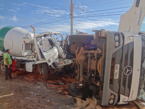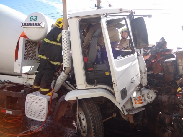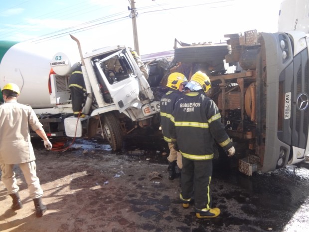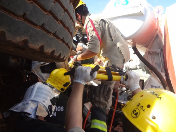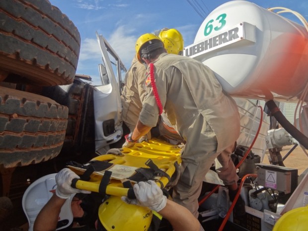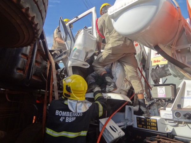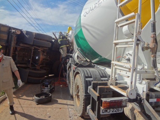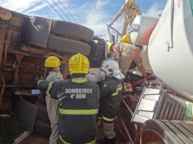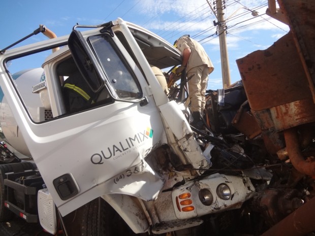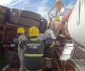Bombeiros Militares de Rio Verde socorrem vítima de acidente envolvendo dois caminhões