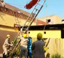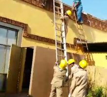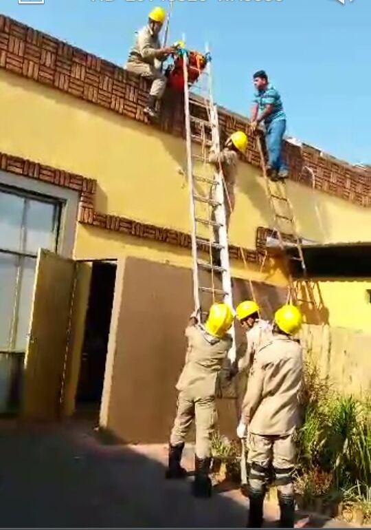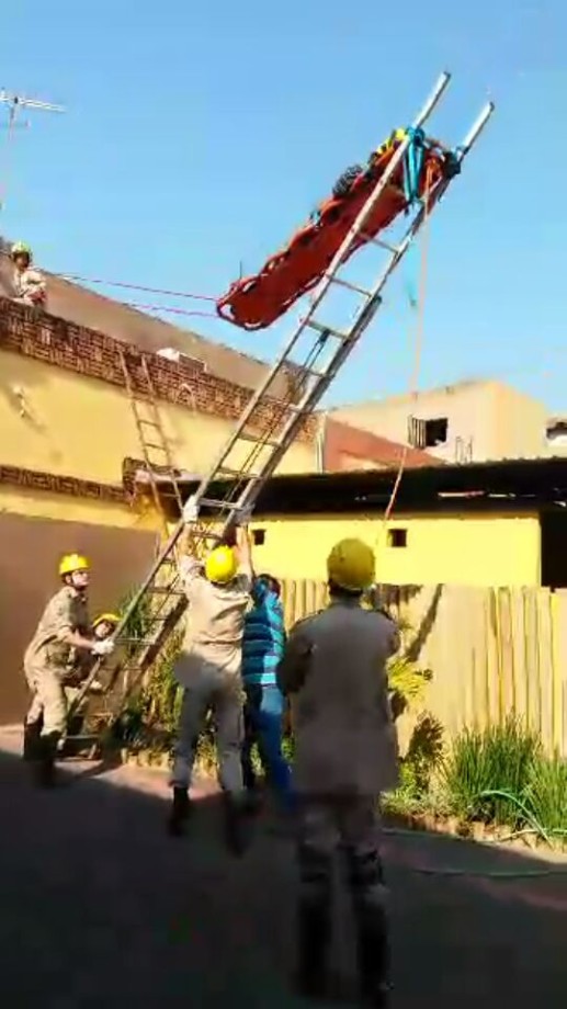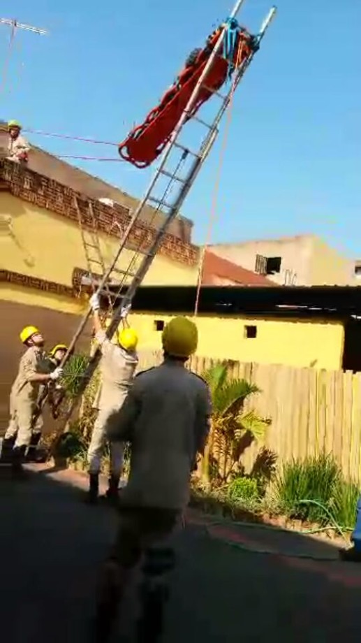 Na manhã de terça-feira, dia 26, o 4º Batalhão Bombeiro Militar, de Rio Verde, foi acionado para socorrer um operário vítima de queda de um telhado seguido de choque elétrico. O rapaz ficou preso entre o telhado e a laje. O ABS-13 e a UR-168 foram socorrer o homem que, apesar do choque, passava bem. Para o salvamento foi empregada a técnica de resgate com escada.