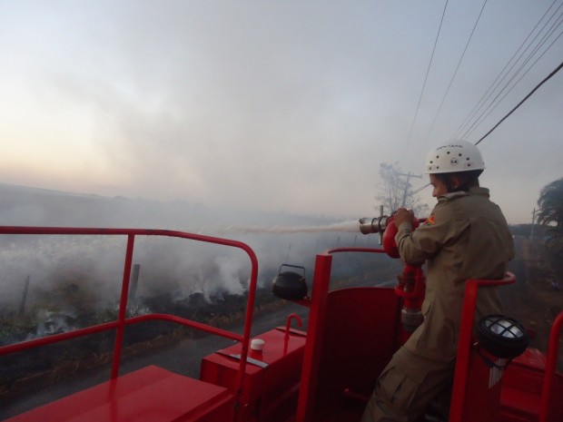 Bombeiros Militares de Santa Helena de Goiás combatem incêndio em vegetação