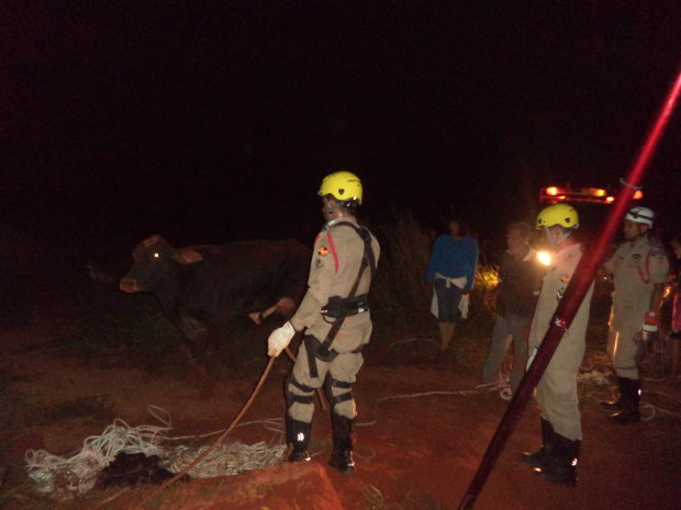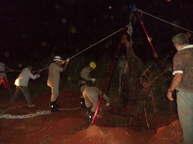 Bombeiros Militares de São Luís de Montes Belos retiram animal de fosso