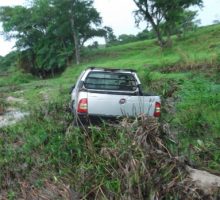 Cinco pessoas ocupavam um veículo que tentou atravessar um pequeno córrego onde havia uma estrada e um vão sem ponte, o veículo foi levado pela enchente causada pelas fortes chuvas que caia na região.