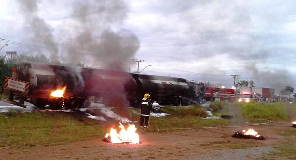Na manhã de segunda-feira, 26, a  2a Companhia Independente Bombeiro Militar, em Senador Canedo, foi acionada para combater incêndio em um caminhão tanque bitrem que transportava etanol na GO-536. No local, as equipes do Corpo de Bombeiros Militar  realizaram o combate  utilizando uma linha de resfriamento e outra de espuma. Após a extinção do fogo, foi realizado o rescaldo dos pontos quentes e a prevenção durante todo o período de transbordo da carga. Atuaram na ocorrência as equipes do ABT 30, ABT 35,  UR-105 e ASA-20. Foram utilizado mais de 15 mil litros de água para controlar o incêndio. Segundo o motorista, o incêndio começou após uma das rodas do veículo travar. Apesar do estrago, ninguém ficou ferido.